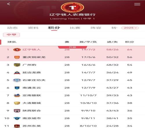2025赛季积分排名截图。