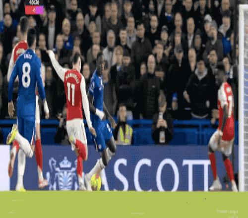 直到第12分钟,本场比赛才出现了第一次的射门,接到埃泽的妙传,萨卡起脚怒射,桑切斯反应迅速,双腿一并,将球挡出。