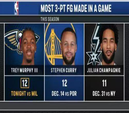 追平库里!墨菲狂轰44+12三分生涯新高鹈鹕加时负雄鹿40败首队